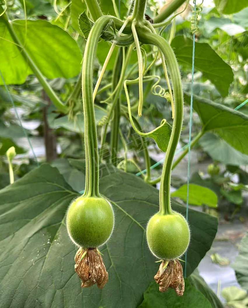 在瓠瓜的坐果期,王老板向筆者發(fā)了幾張“圓滿1號”瓠瓜的照片;這次問他“春棚如意”的照片,他說換了手機,照片沒有了。下面就只能刊出幾張“圓滿1號”瓠瓜的照片了,以饗讀者!