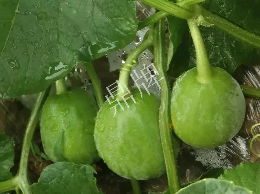 早熟,果皮呈流金溢彩,果肉乳白,單果重800g左右,口感特別甜脆。因果皮脆嫩,適宜包裝網(wǎng)袋后運(yùn)輸,產(chǎn)品定位為高端市場??鼓嫘詮?qiáng),遇上暴雨不易裂瓜,大棚或露地、吊蔓或爬地都能獲得豐產(chǎn)。