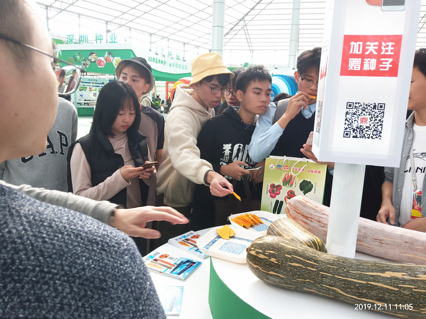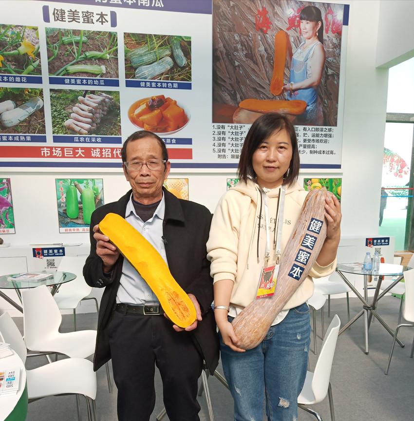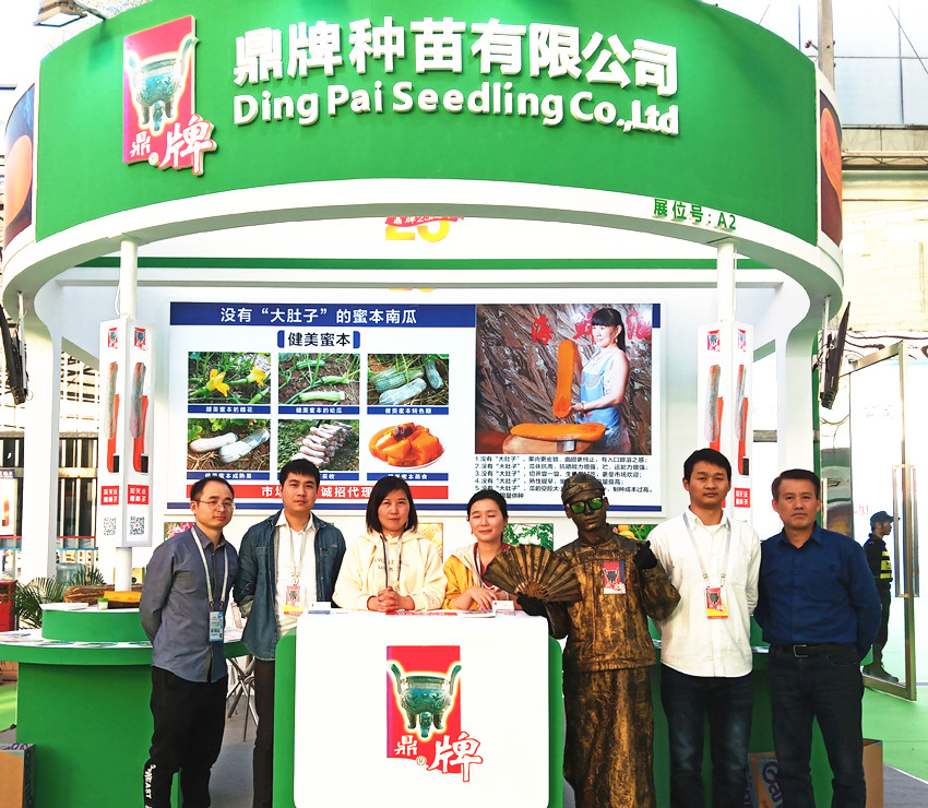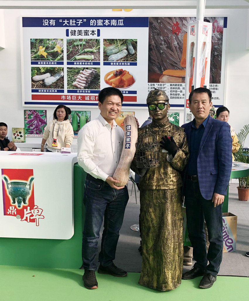 活動現(xiàn)場,鼎牌展位(A2)在展示大廳脫穎而出??蜕虃冏叩秸古_前紛紛停下腳步,被鼎牌獨創(chuàng)的“沒有大肚子的健美蜜本南瓜”所吸引。