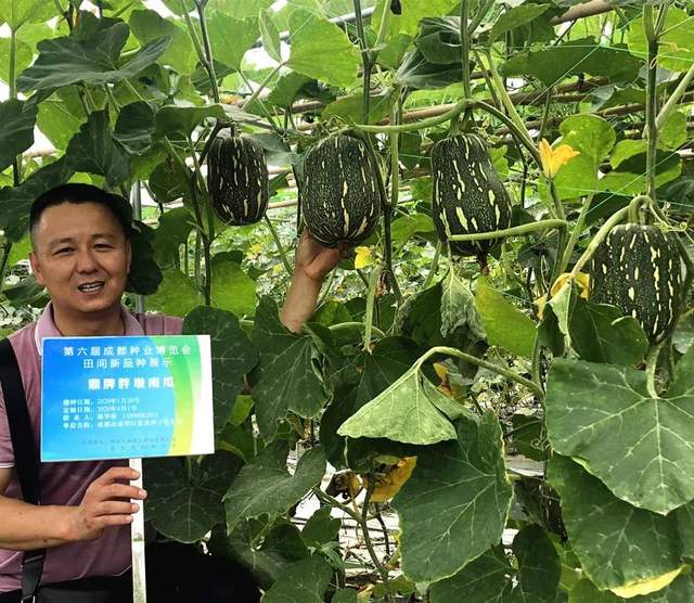 上面的圖片中,有一個(gè)新品種“胖墩”蜜本南瓜,是第一次與成都客戶見(jiàn)面。坐果之齊整,果形之端正,讓參觀的客戶留下了深刻印象;其品質(zhì)與“健美蜜本”南瓜一樣優(yōu)秀,生瓜都好吃!雖然胖、雖然墩,長(zhǎng)得胖胖墩墩,但瓜的空腔小,同樣沒(méi)有“大肚子”。遺憾的是,會(huì)議期間還沒(méi)有成熟,未能品嘗。該品種將于今年10月1日開(kāi)始向全國(guó)推廣。