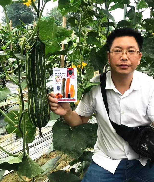 ▲ 客戶在展示“健美蜜本”南瓜,