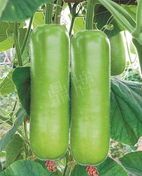 果實棒形,嫩瓜上市時果長23厘米左右,果徑約6厘米,果重400克左右。果皮嫩綠,肉質(zhì)乳白,沒有粗纖維,口感細膩柔軟,清香味甜。