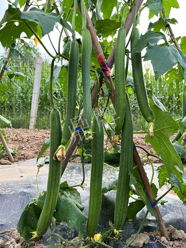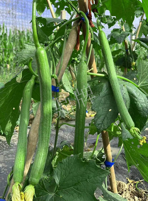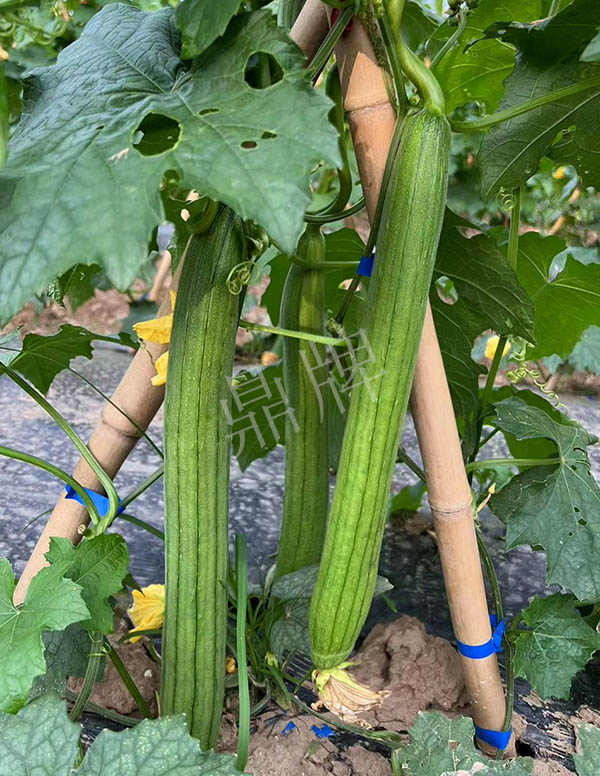 反交種子,極早熟,果皮更翠綠,坐果更多,產量更高;果長45~50厘米,果重約400克,品味好。用種:15袋/畝。