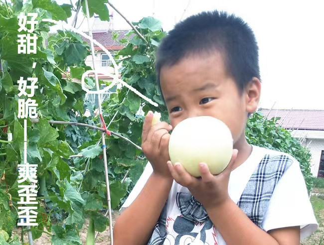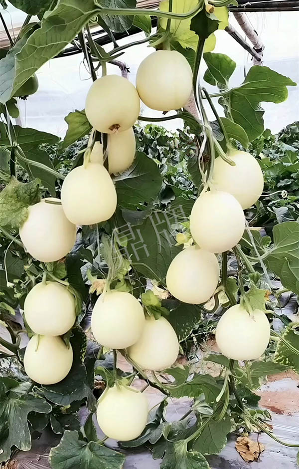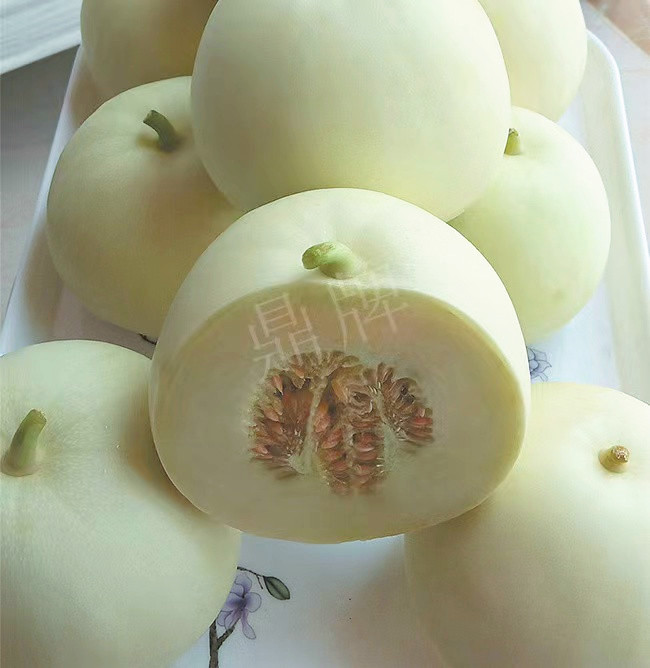 果實(shí)成熟后,甜度高達(dá)19度;果皮、果肉潤(rùn)白,有一種天然質(zhì)感,看到就讓人喜歡;果肉厚達(dá)3厘米,這是薄皮甜瓜中難以見(jiàn)到的品種,連皮吃時(shí)能聽(tīng)到“咔嚓”之聲,脆爽無(wú)比;坐果早而多,單果重650克左右;多雨天氣不易裂瓜,棚室、露地都能獲得豐產(chǎn)。